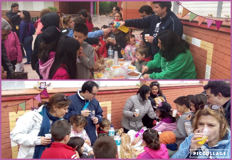Poco a poco fuimos llegando un montón de familias , el equipo directivo , alguna profe y la Asociación El Bancal (con Almudena al frente) que es la que nos ayuda con la gestión y mantenimiento del huerto.