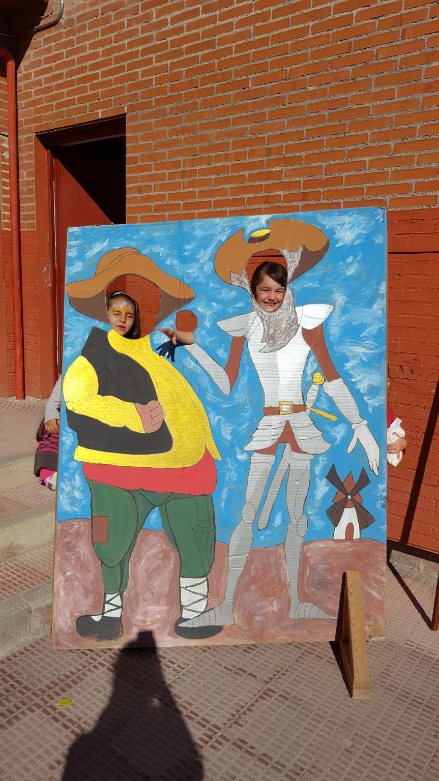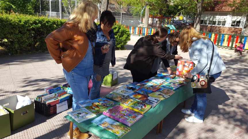 Por la mañana, tod@s l@s niñ@s pudieron llevarse uno o dos libros a sus casas, mediante trueque, en el mercadillo que se preparó en el cole con la ayuda de padres y madres voluntari@s. Al mismo tiempo, algun@s alumn@s hicieron lecturas con micro de la obra de Gloria Fuertes y Don Quijote de la Mancha y amenizaron así, el evento.
