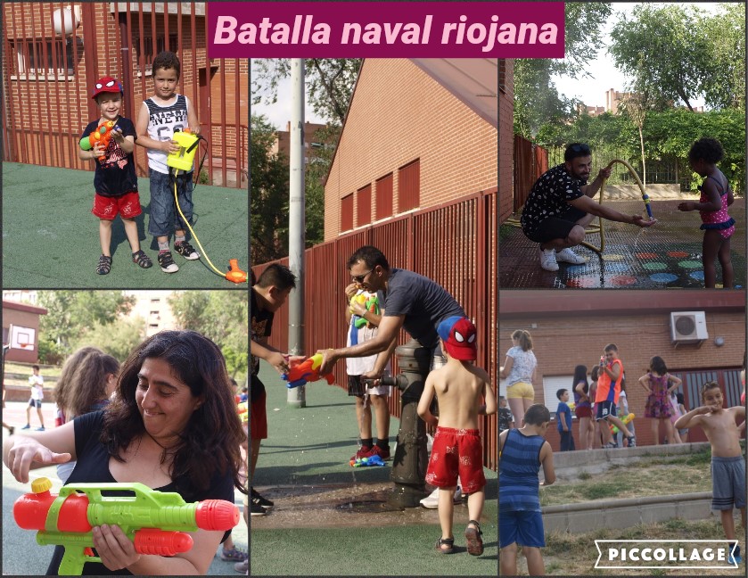 Hubo taller para pintar camisetas, pintacaras y una auténtica batalla naval riojana que nos caló hasta los huesos… largas filas de niños y padres esperaban pacientemente para poder cargar munición y lanzarse a la pista para empapar a todo el que se cruzara por delante…