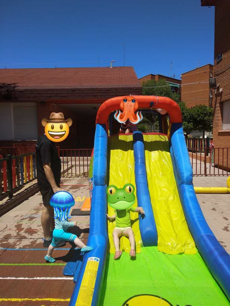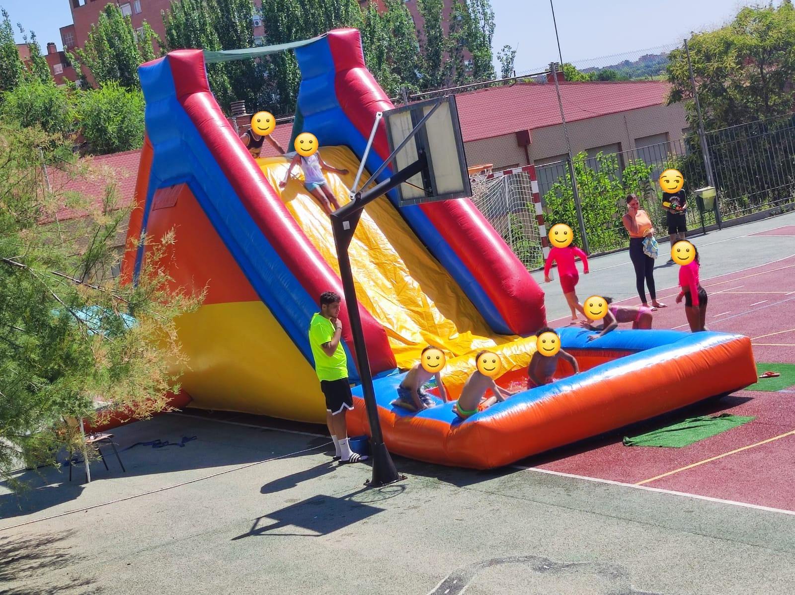 Como ya hicimos hace unos años, la idea es contratar unos castillos hinchables con agua y una pista para deslizarse, y poder refrescarnos y llevar mejor el calor y música para acompañar la fiesta. Además, este evento sirve para que podamos pasar un día en familia y conozcamos mejor a las otras familias del cole 🤗.