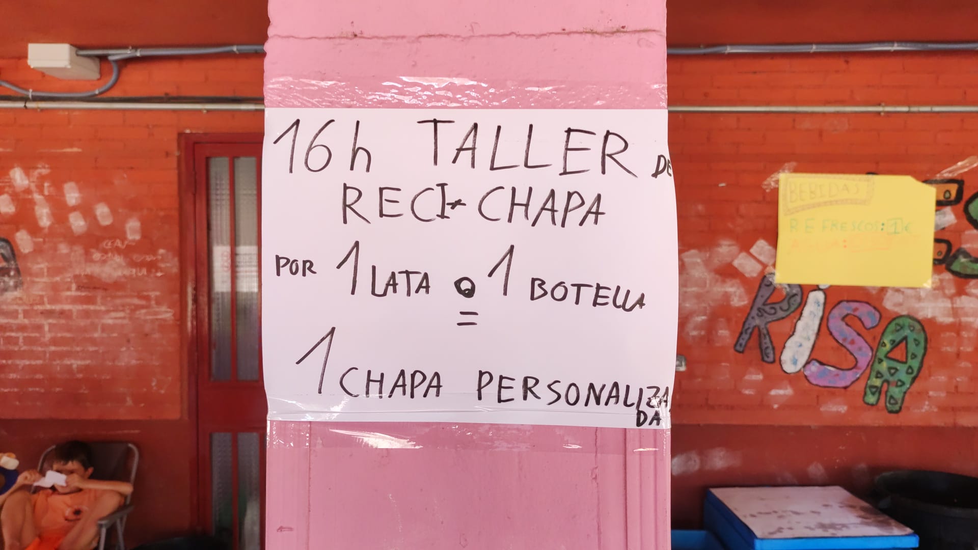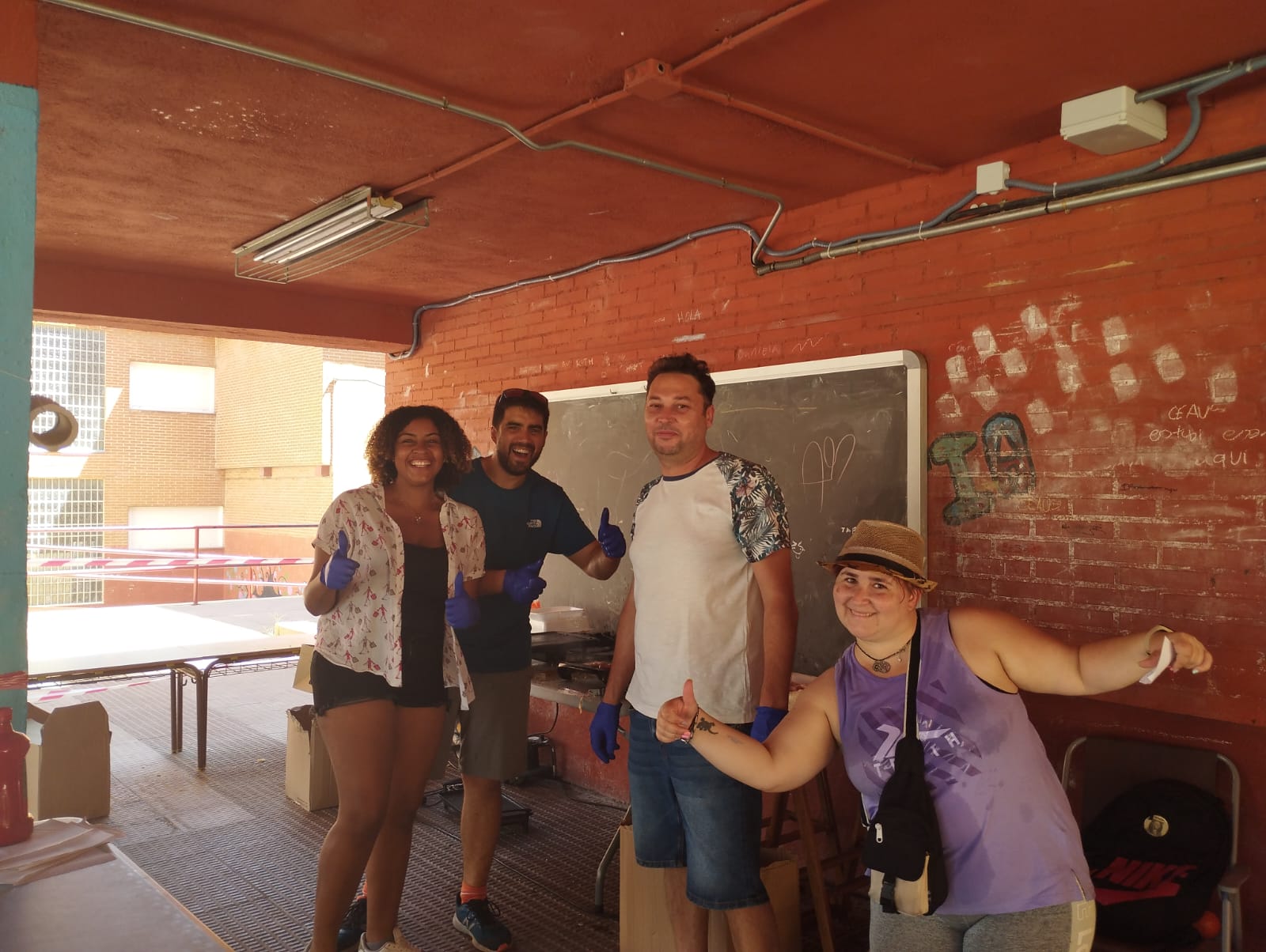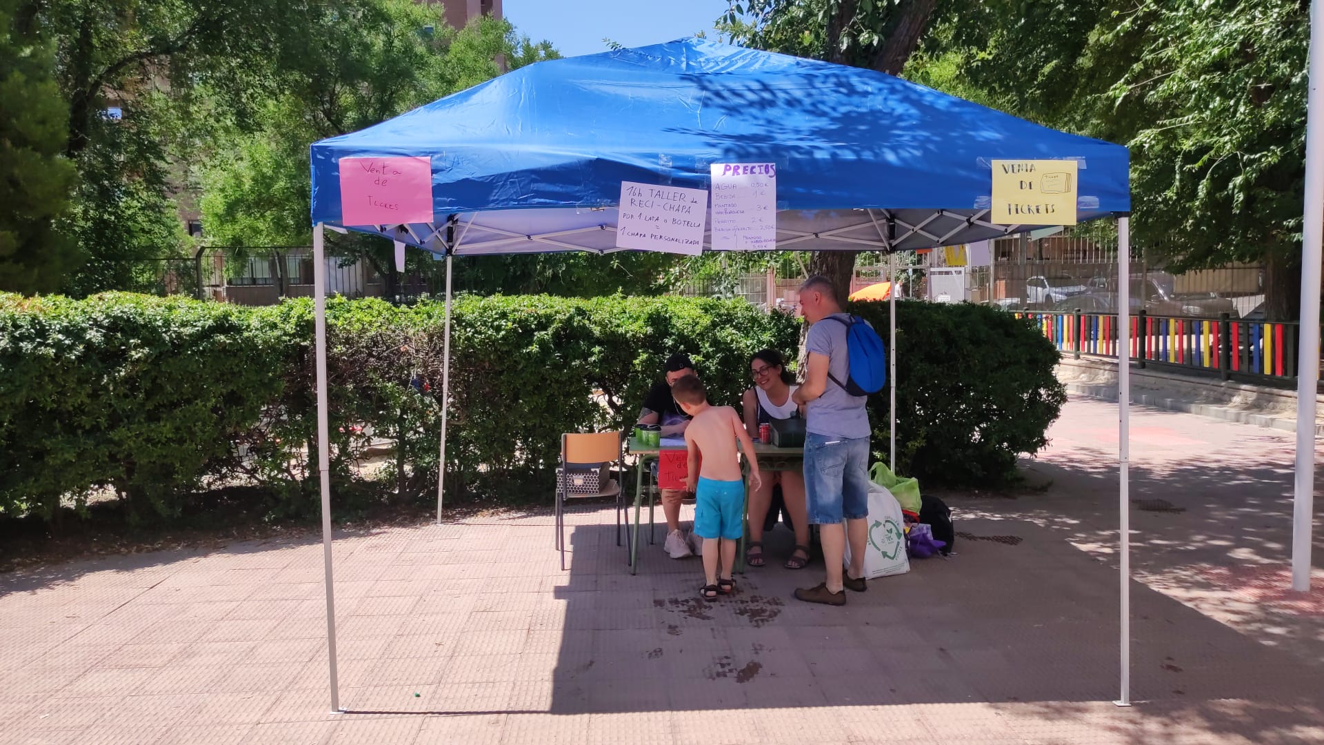 La fiesta comenzó por la mañana y se desarrolló durante todo el día. No faltó de nada para diversión de pequeños y mayores: castillos hinchables con agua, taller de chapas a cambio de reciclar las botellas de agua y latas, música, bar con todo tipo de manjares: perritos, hamburguesas, bocadillos de chorizo y panceta…y muchos refrescos para hidratarse en un día de mucho calor. Como anécdota, para que os hagáis una idea del éxito del bar, hubo que hacer una segunda compra de carne y bebida ¡para abastecer la demanda de los comensales!