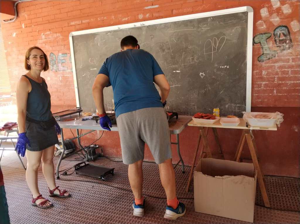 Pero lo que realmente hizo especial esta fiesta, fue la colaboración de las familias, niños y niñas: familias que se encargaban de la cocina, familias que fueron a comprar la carne/bebidas, familias que aportaron toldos para el calor y utensilios para montar el bar como planchas, cámaras frigoríficas, etc., familias que se encargaron de vender los tickets y controlar la entrada en puerta, niños y niñas que hicieron los carteles el día de antes….y por supuesto, a la Comisión de Festejos y a la AMPA en general por su gran implicación y organización.