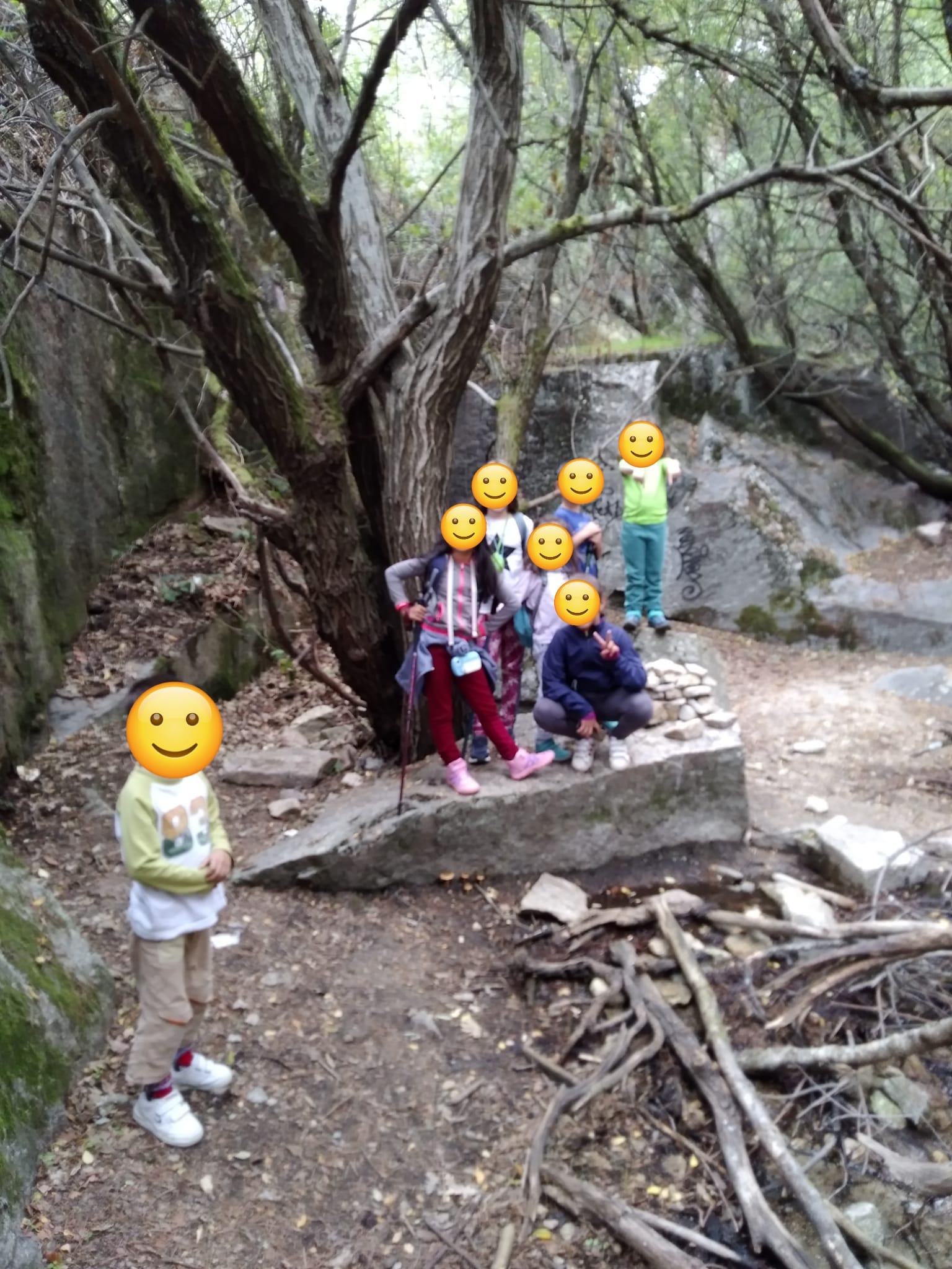 Después, retomamos el camino para seguir paseando entre pinos, hasta que llegamos a un segundo arroyo, donde aprovechamos para sentarnos y comer. Y l@s peques estuvieron jugando por allí, unos a las cartas y otros a pasear por el arroyo… Y aunque hubo un par de caídas al agua, no fue nada que no se secara con un par de servilletas. 😅