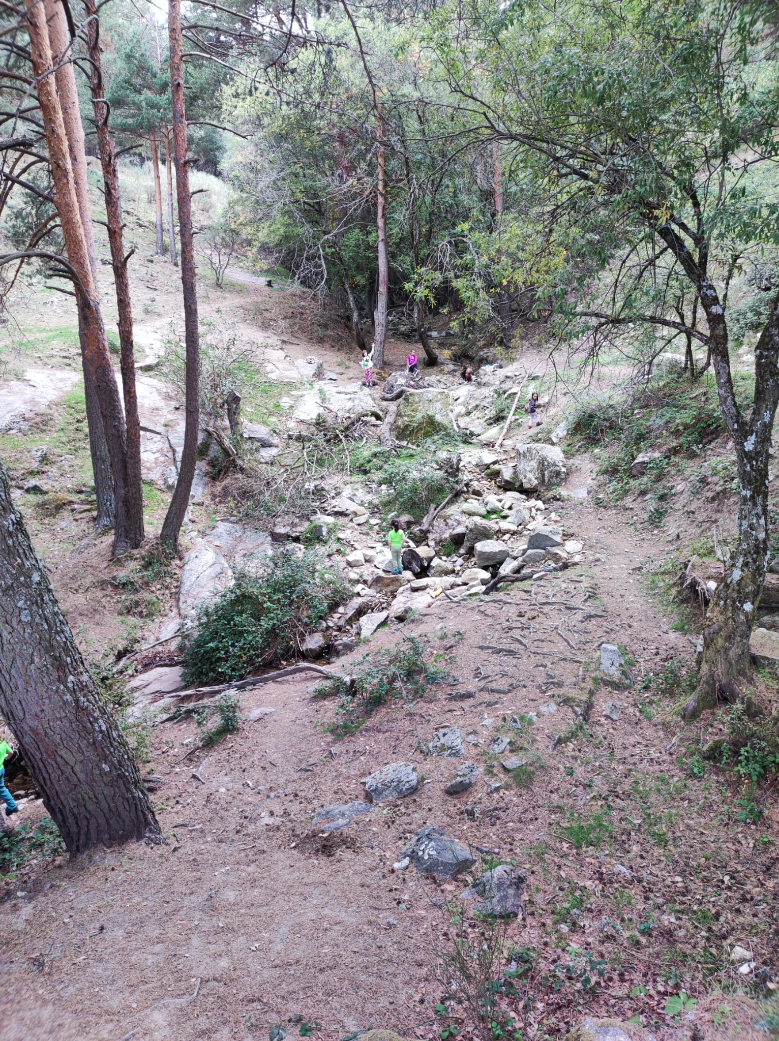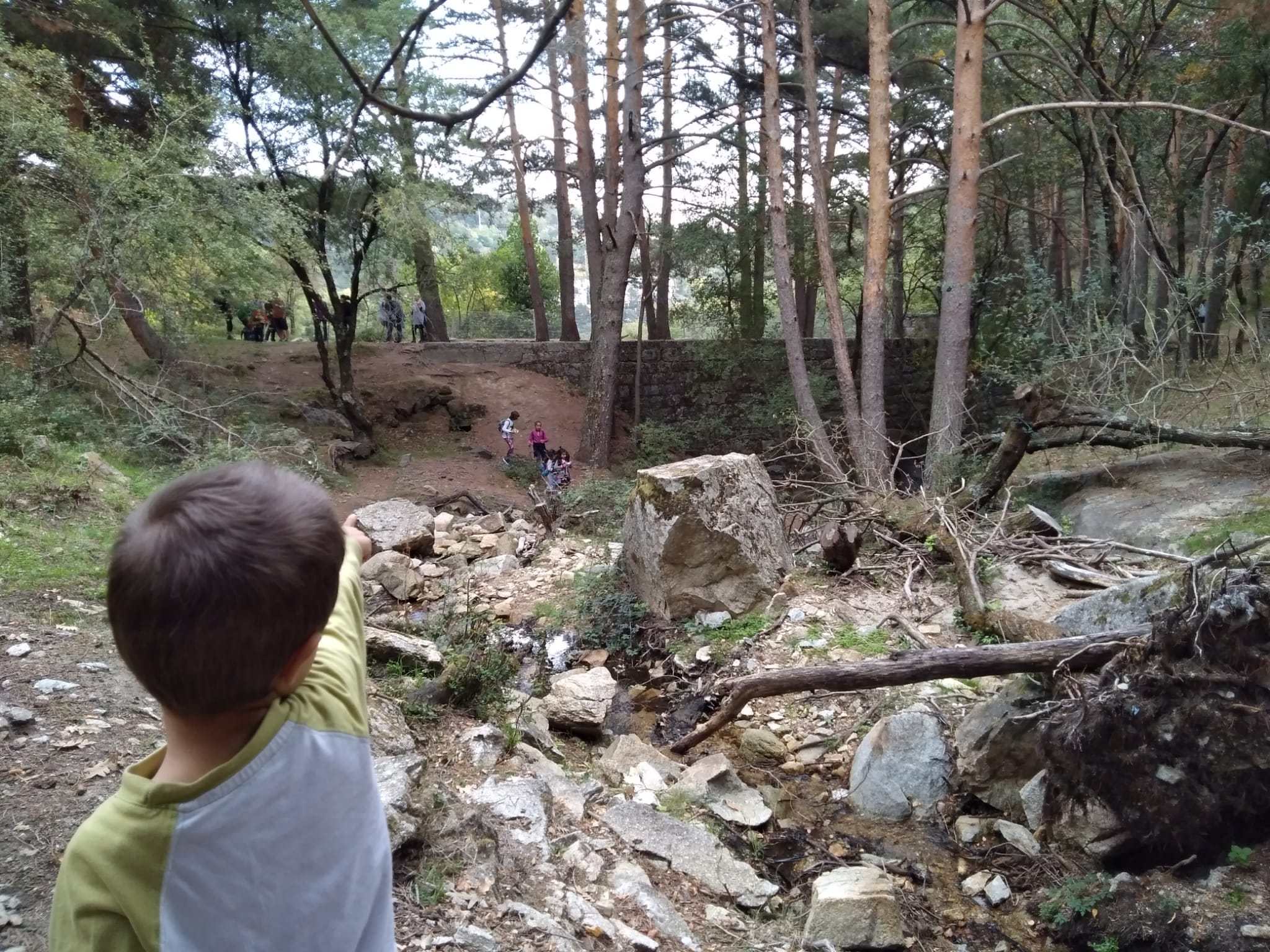 Nada más cruzar una valla que evita el paso de ganado o animales de gran tamaño, nos encontramos con un primer arroyo, donde l@s peques pasaron un rato entretenidos buscando un posible nacimiento del mismo, palos, piedras, etc… Por suerte, no tuvimos que poner a secar ningún calcetín… 😅