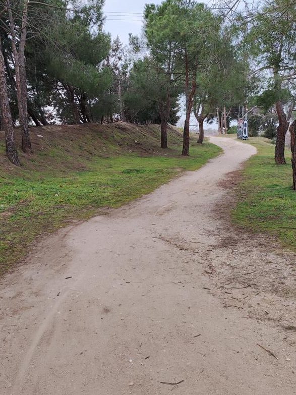 Cruzamos por el puente peatonal sobre las vías del tren que vimos al poco de entrar, y recorrimos el último tramo dentro de la Casa de Campo separados de las vías por un pequeño montículo qué es muy divertido para subir y bajar 😂.