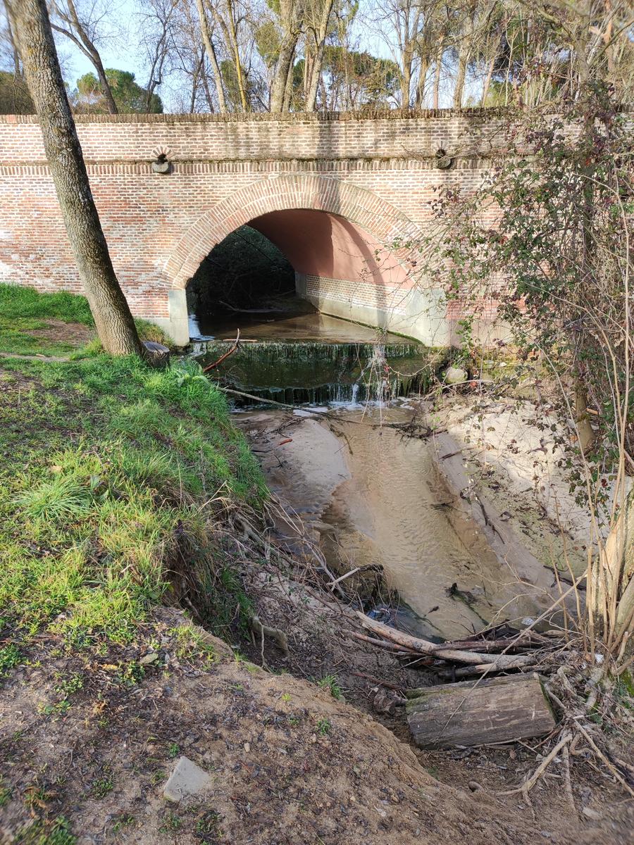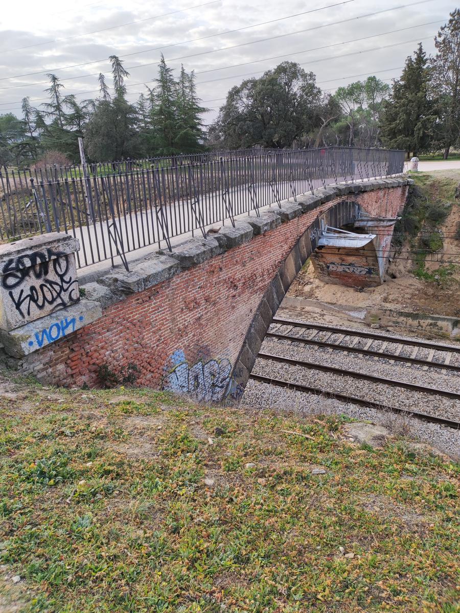 Después de la sobremesa y recoger todo lo que habíamos sacado para el picnic, continuamos el camino, y nos desviamos un poco para ver el penúltimo puente que hay antes de llegar al punto donde el arroyo cruza por debajo de las vías del tren.
