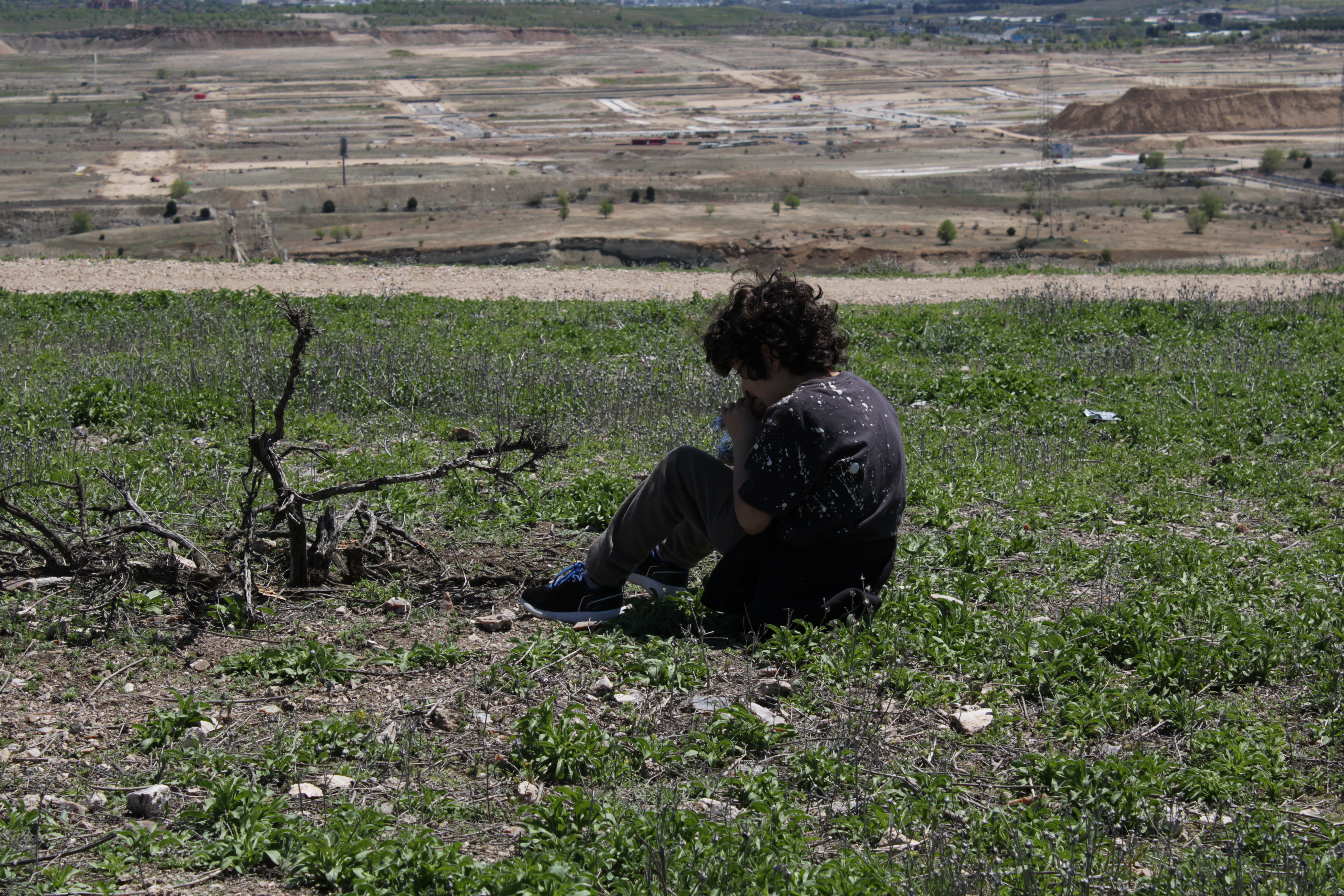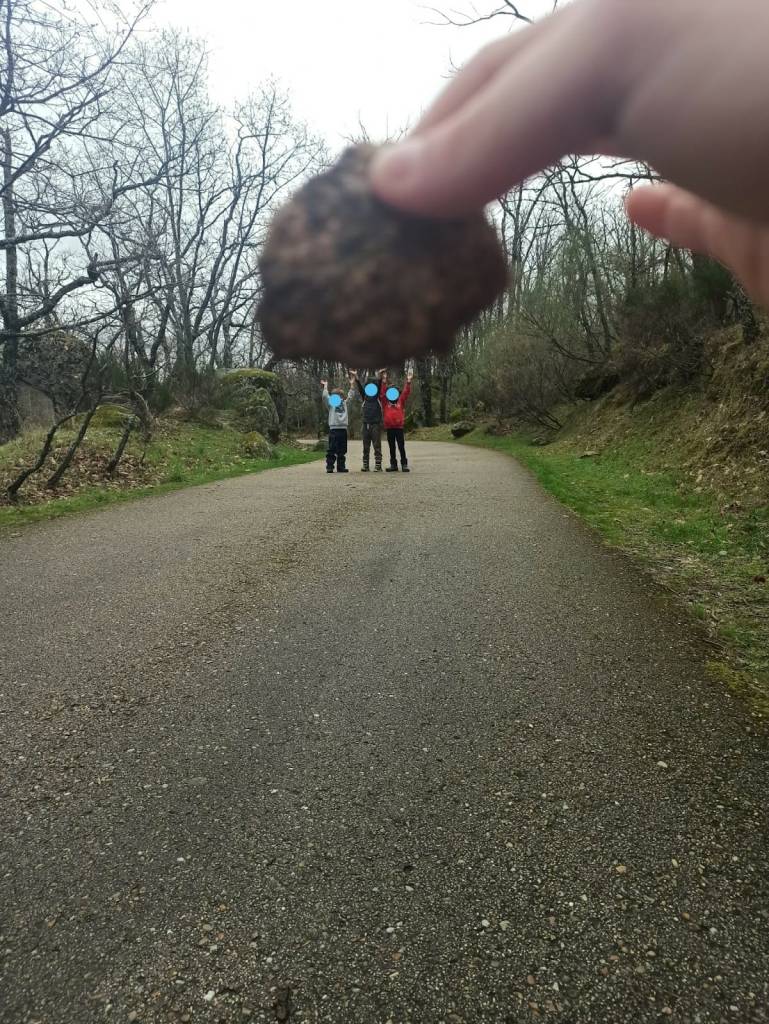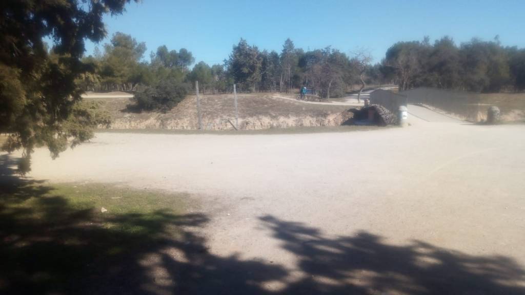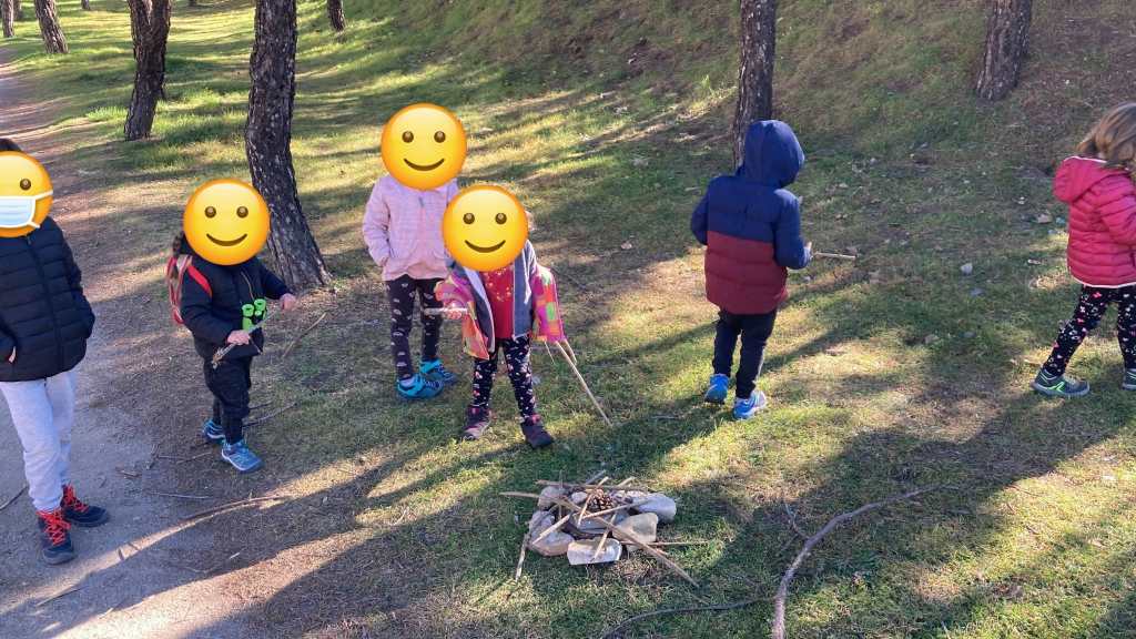 El punto de encuentro es un caminito de entrada cerca de una una zona de chalets con un pequeño terraplén donde ya empezaron con la recolección de palos, piedras y piñas mientras llegábamos las familias.