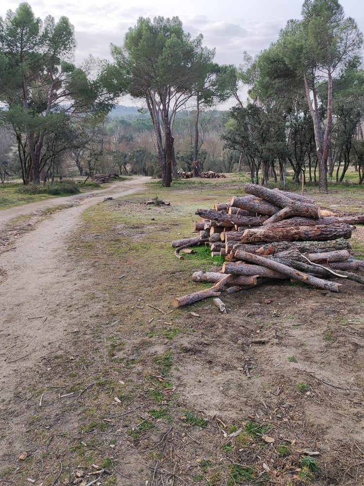Desde allí cogimos el camino de vuelta, por el que nos encontramos varios restos de troncos de árboles que cortaron por la Filomena y algunos que parecía que los habían cortado más recientemente.