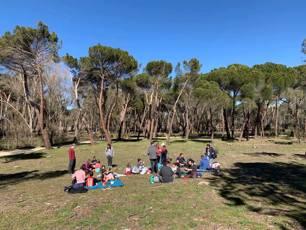 El pasado domingo 20 de febrero nos juntamos una cuantas familias entre las 10:30 y las 11:00h (algunas llegamos un pelín tarde 😅) en la entrada a la Casa de Campo por Aravaca. La mayoría de las familias fuimos en coche, pero una familia fue en transporte público, que para eso estaba esa opción 🤗.