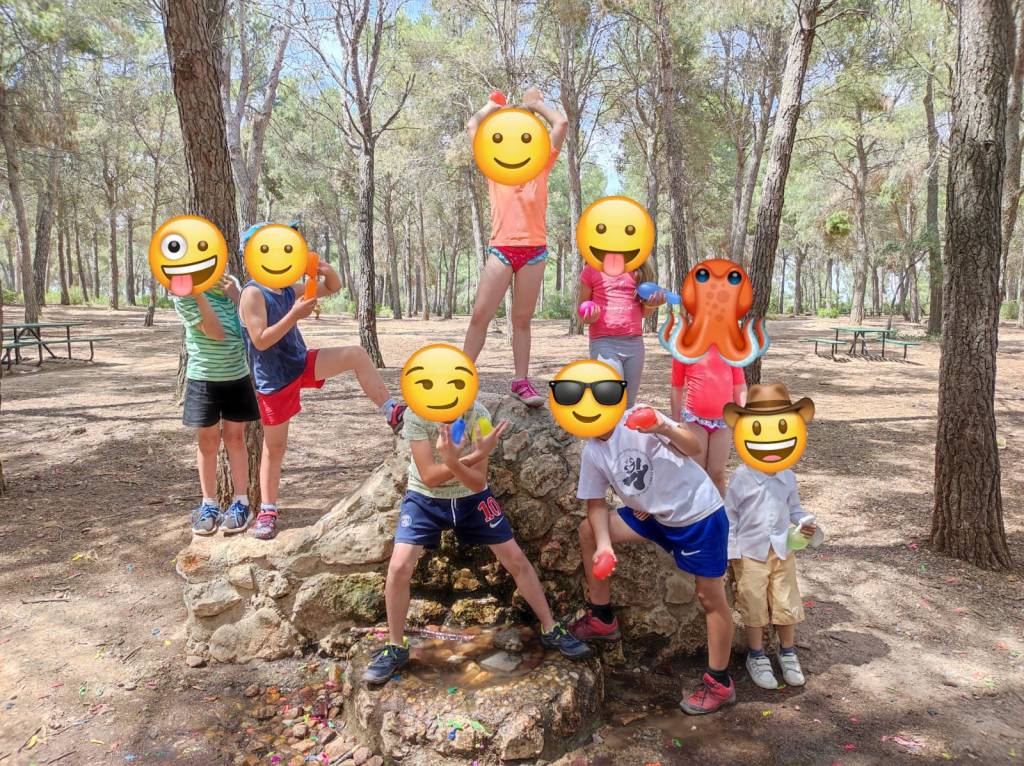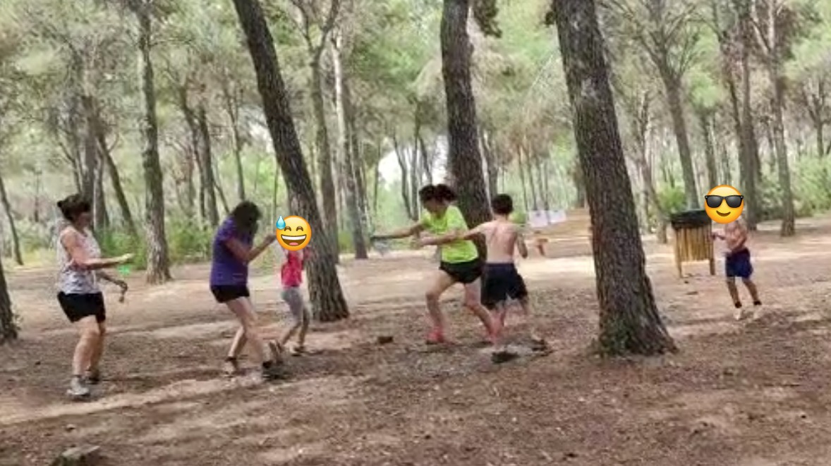Ya donde la torre de vigilancia estaba el merendero de la dehesa, un pinar muy tupido lleno de mesas de picnic, fuentes y columpios, allí cogimos una mesa doble para caber todos y comer juntos. Primero l@s peques y después l@s adult@s, porque había prisa para empezar la guerra de agua.